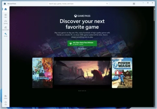 运行 Microsoft Store 版本 22308.1401.x.x 及更高版本的预览用户,将能够看到新的 Game Pass 页面,可通过该页面订阅 PC Game Pass 或 Game Pass Ultimate。