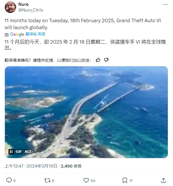 R 星资讯媒体 RockstarINTEL 的 CEO Nuro_Citrix 爆料称,《GTA6》发售日定于 2025 年 2 月 18 日。
