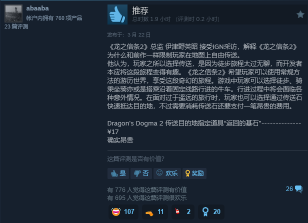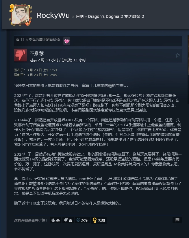 《龙之信条 2》游戏除了 PC 版优化问题之外,被玩家吐槽最多的一个问题就是内购元素太多,玩家称“快速旅行都要钱”。