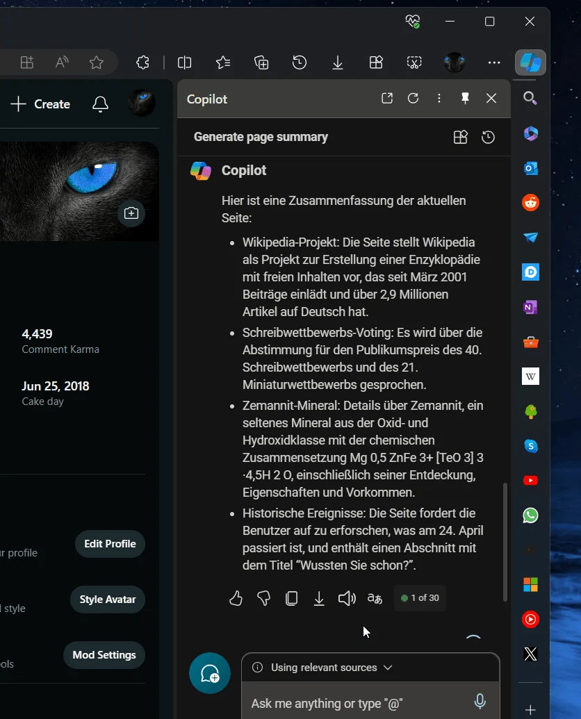 目前来看,Copilot 相对于 GPT 等 AI 工具仍有薄弱之处,不过它提供的一些功能对于 Windows 用户和 Edge 用户来说也是非常实用的,例如自带的翻译功能。