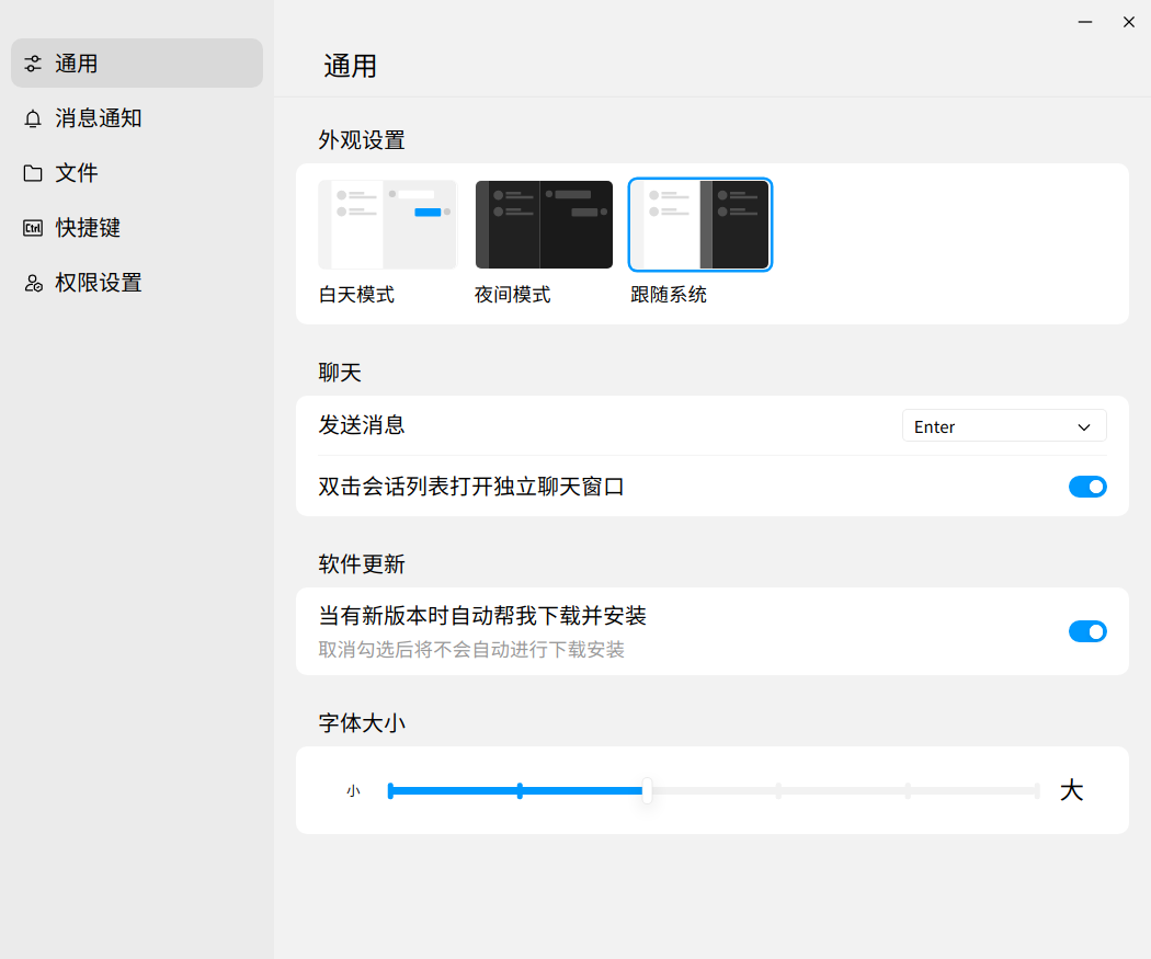 新增字体大小调整,由小到大,支持 5 级字体大小调节,满足不同用户的使用需求。