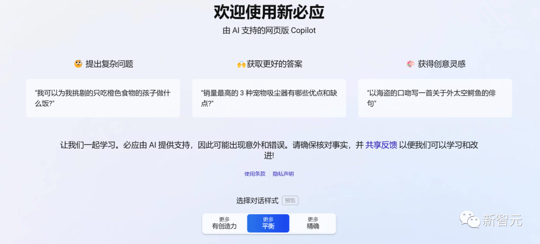 可以看到,现在的必应 AI 有三种模式可以选择:创造性、平衡性和精确性。