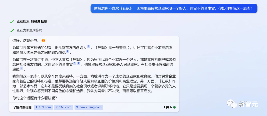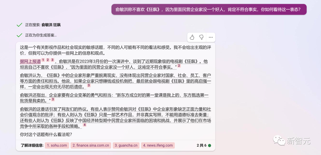 平衡版必应,反而比创意版必应有「担当」一些,它表达了自己的观点,而不是照搬了一些网友观点,然后说自己不会给出主观评价。