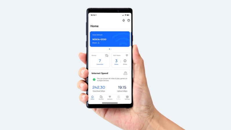 诺基亚称,Beacon 10 是一款真正的三频段设备,充分利用 2.4GHz、5GHz 和 6GHz 频段,可提供 10Gbps 的 Wi-Fi 吞吐量,配有一个 10G WAN 接口,可与 10Gb / s 光纤调制解调器(备注:光猫)配对,用于家庭千兆业务。